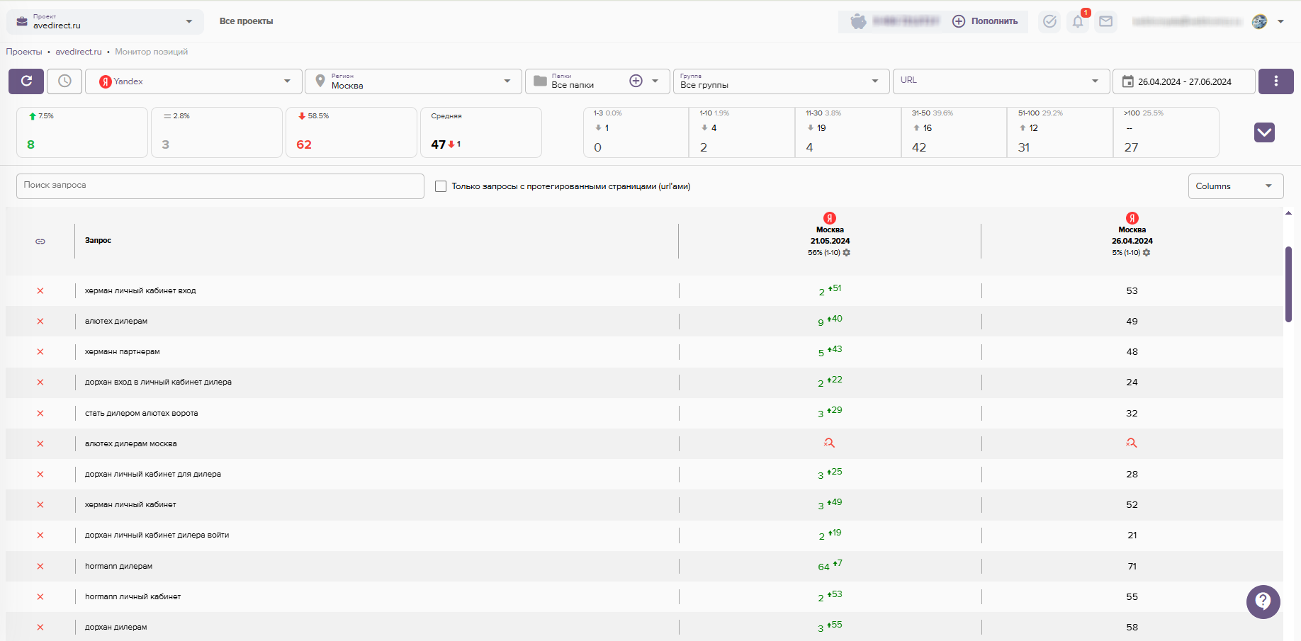 - Проверка ранжирования текущих позиций сайта