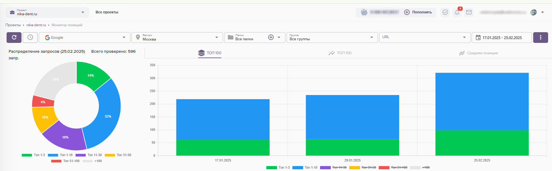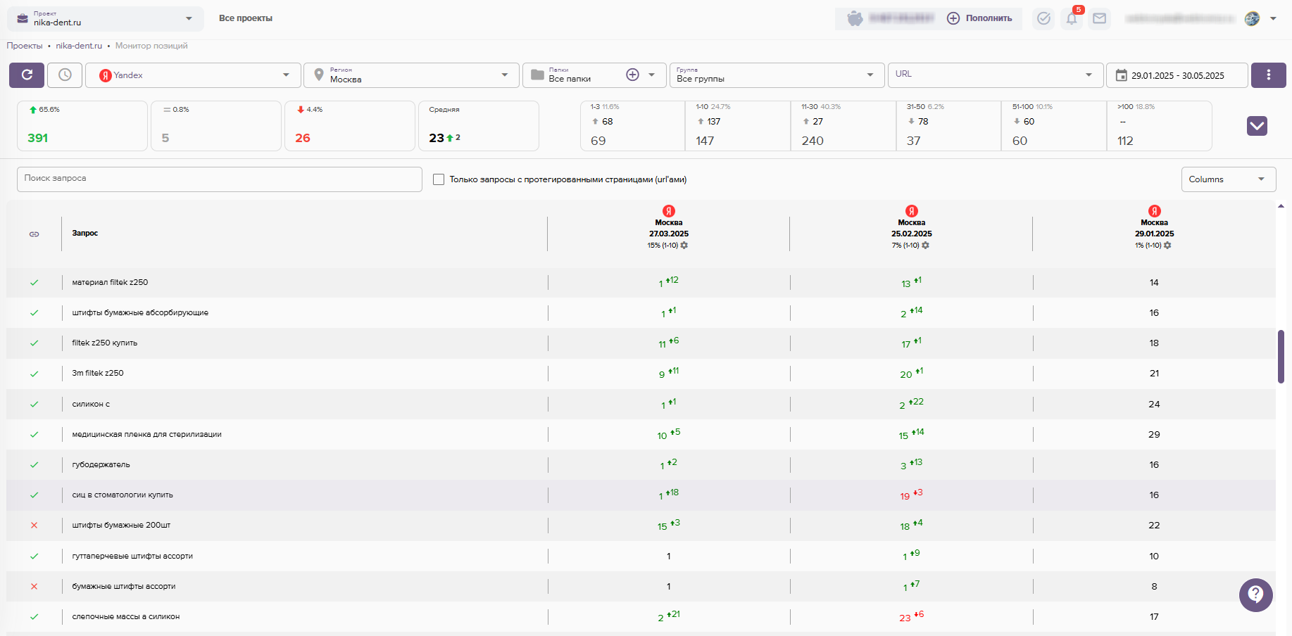 - Проверка ранжирования текущих позиций сайта