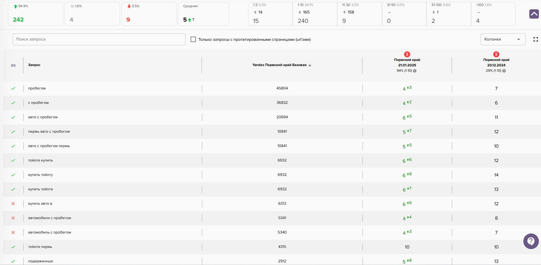 - Проверка ранжирования текущих позиций сайта
