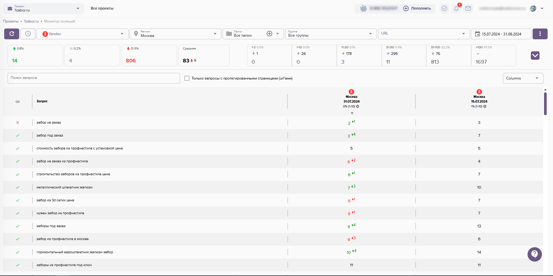 - Проверка ранжирования текущих позиций сайта