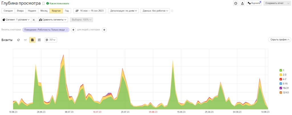 Пример отчета «Глубина просмотра» (инструмент «Яндекс.Метрика»)
