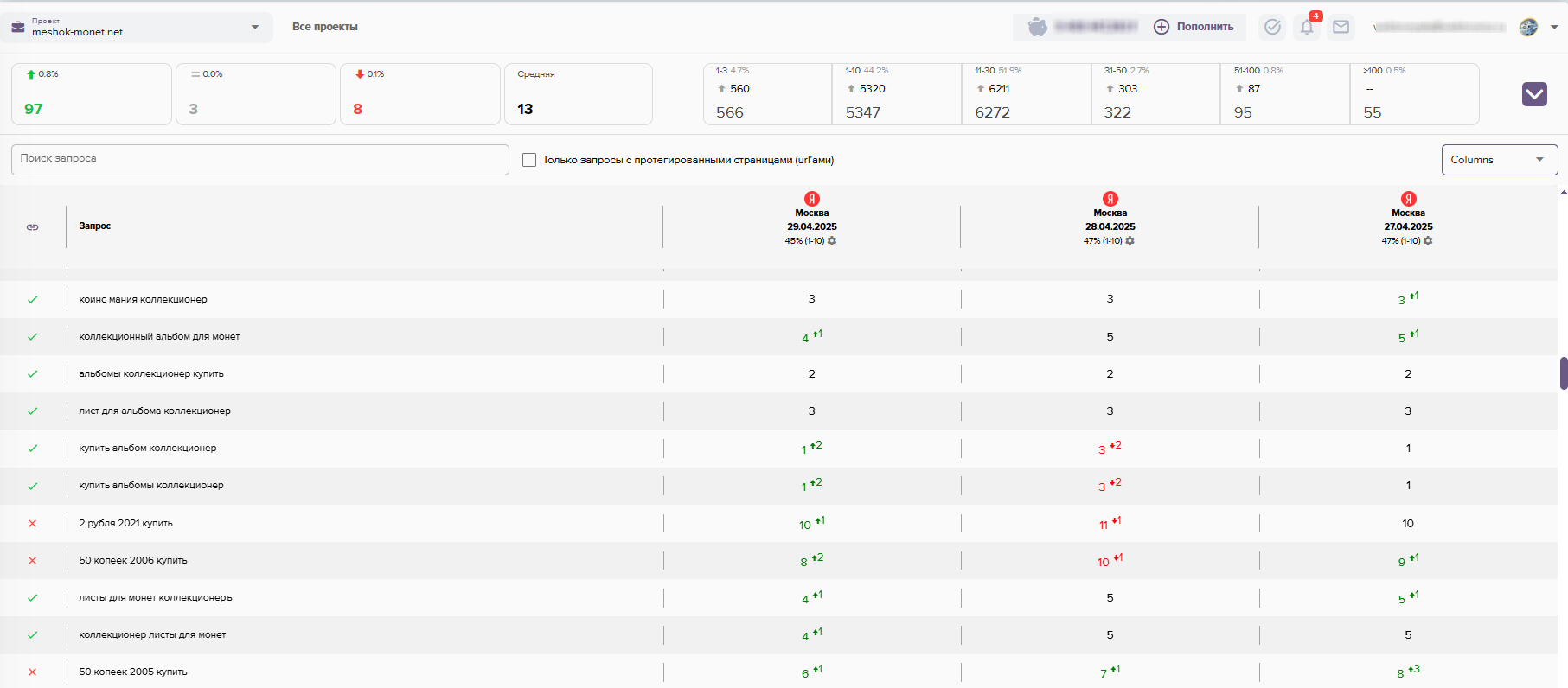 - Проверка ранжирования текущих позиций сайта