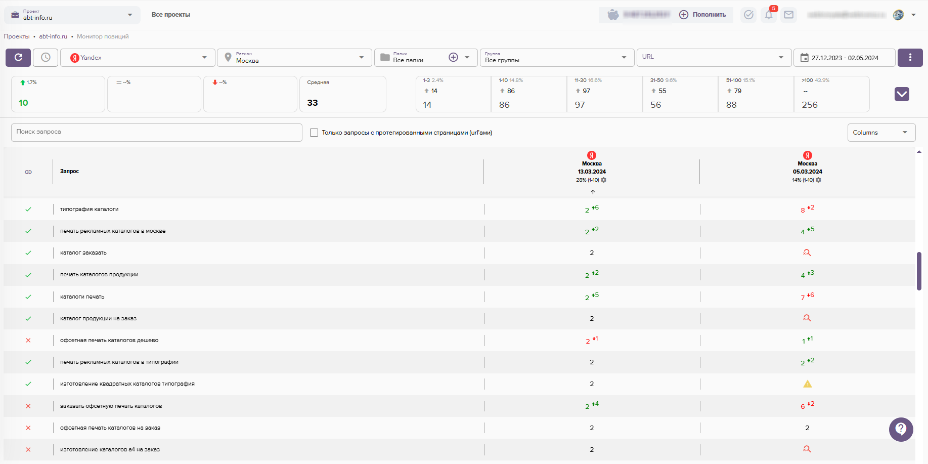 - Проверка ранжирования текущих позиций сайта