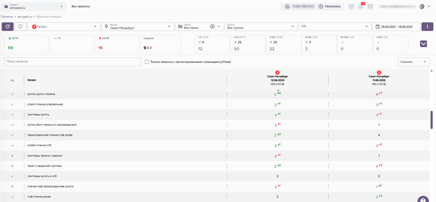 - Позиции сайта — место, которое продвигаемые страницы занимают в поисковой выдаче по ключевым коммерческим запросам.