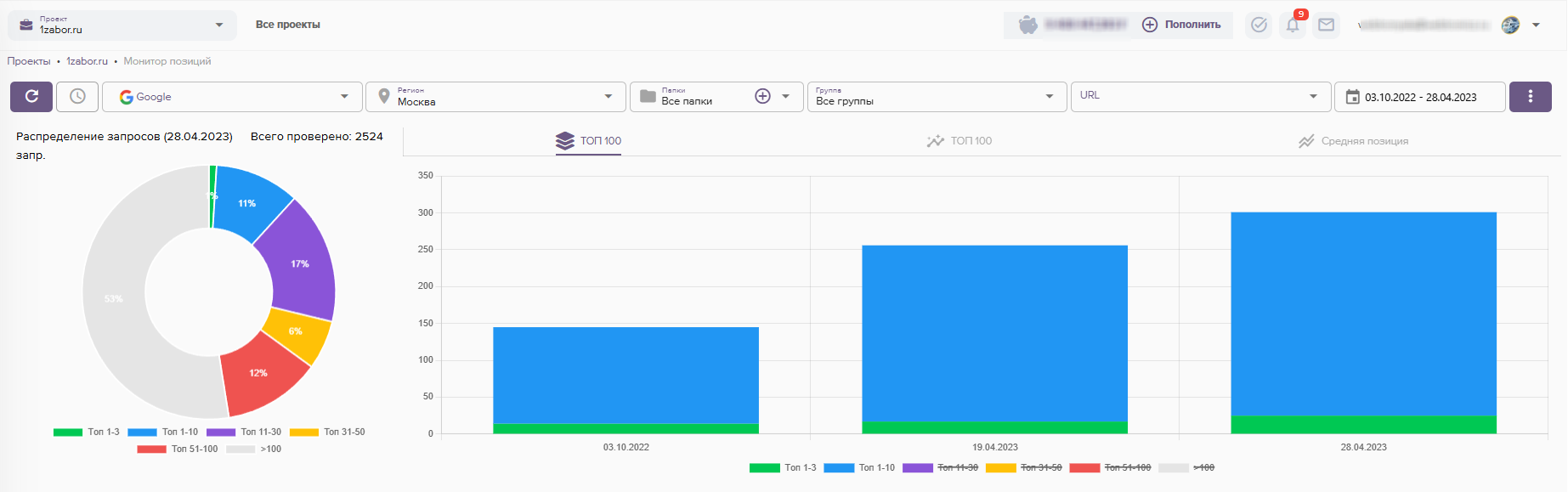 Когда ожидать результатов по выходу в ТОП?